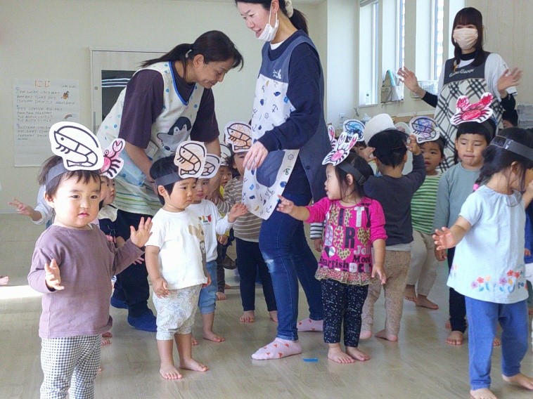 他のチームのお友達とサンサン体操をしたり、エビカニクスを踊りましたよ♪2階のお部屋に集まって総練習をしましたが、少しドキドキしている様子でした。当日はどのような表情を見せるのか…楽しみですね!