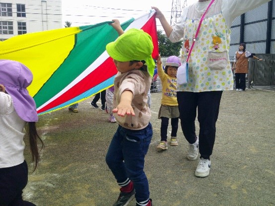 にじ・そら(3・4歳児)チームは、パラバルーンや遊戯など、経験を重ねていくごとに、どんどん上手になっています✨