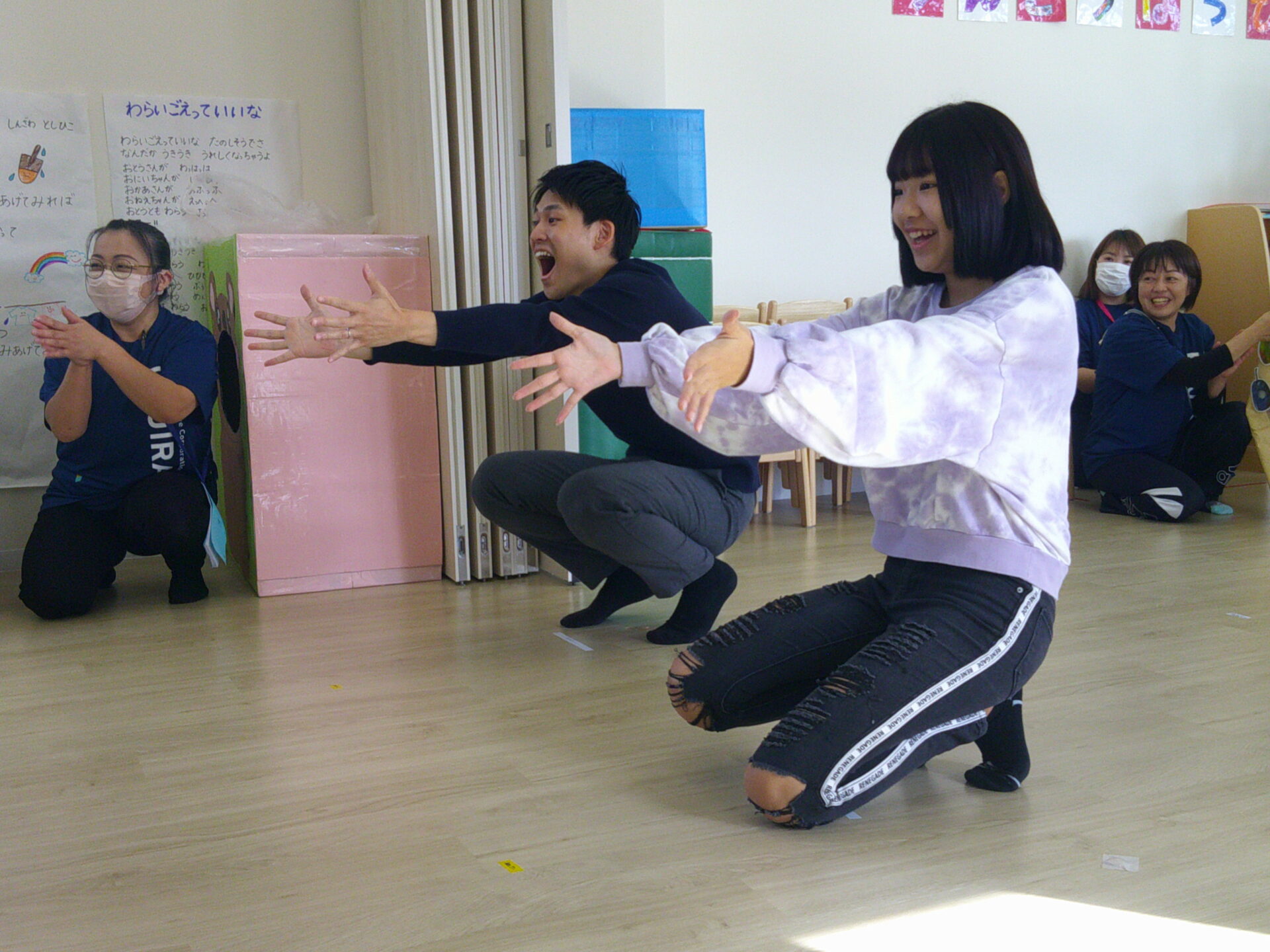 大好きな「サンサン体操」の曲がかかると笑顔が和らいだり、