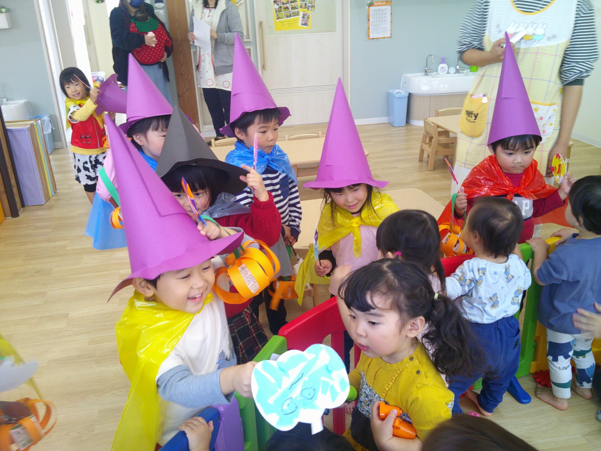 子どもたちはオバケや魔法使いに変身して、お部屋を回りました!