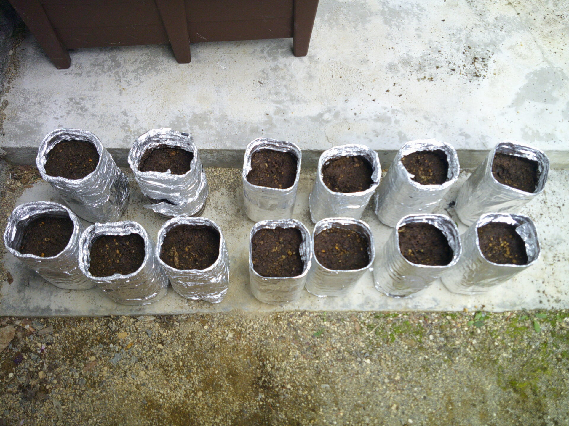 ペットボトルをひっくり返してフリフリ!土をだしていると
