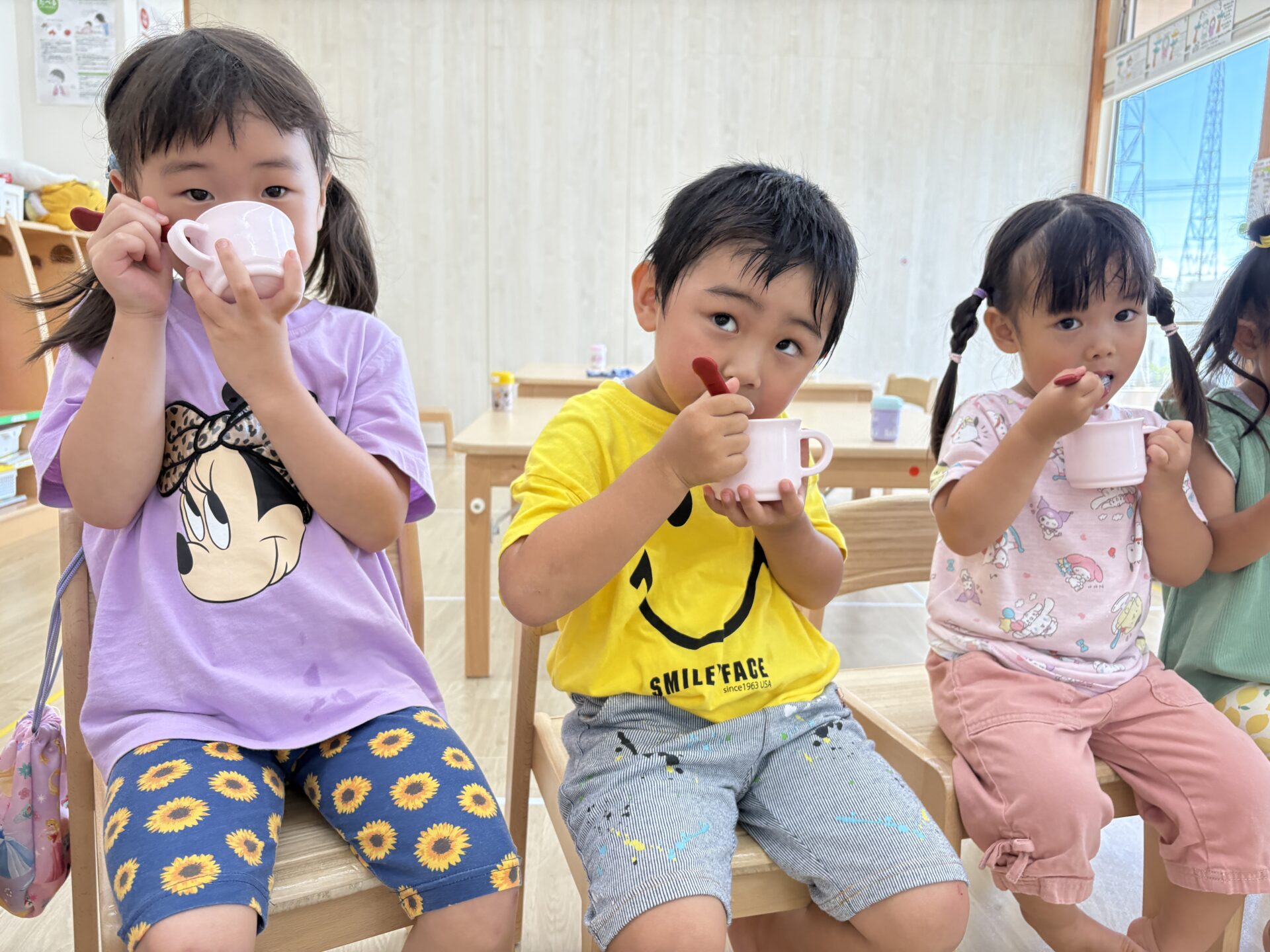 汗もかいたので早めに保育園に戻り、かき氷を食べました!