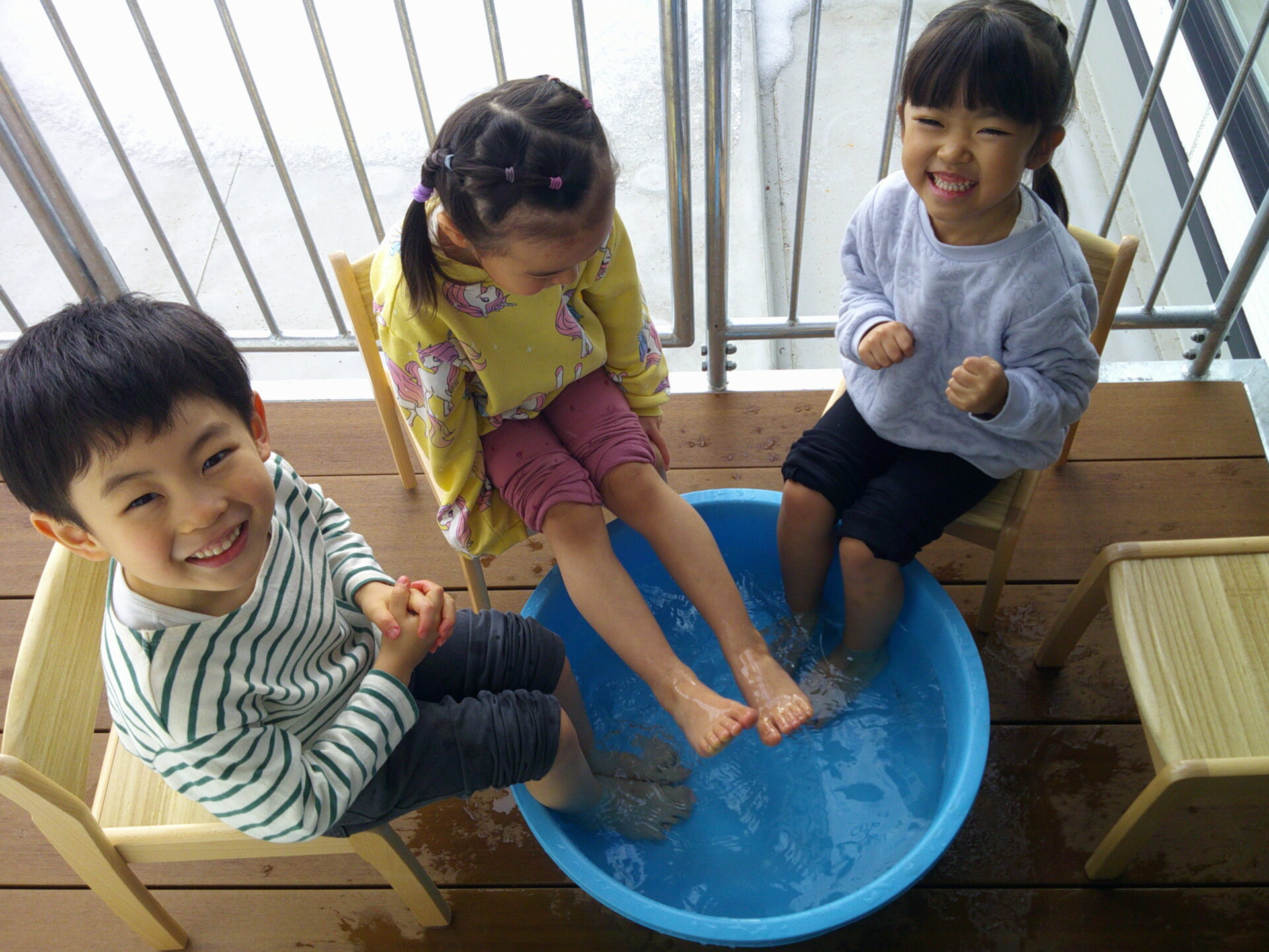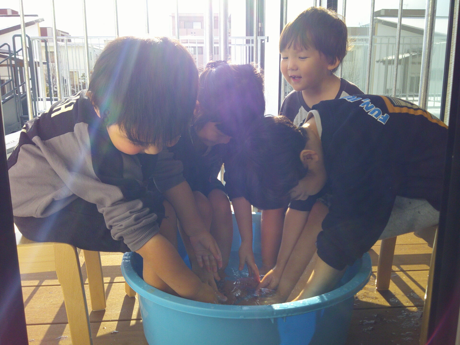 戸外の寒さと裏腹にあったかいお湯に足や手を入れ