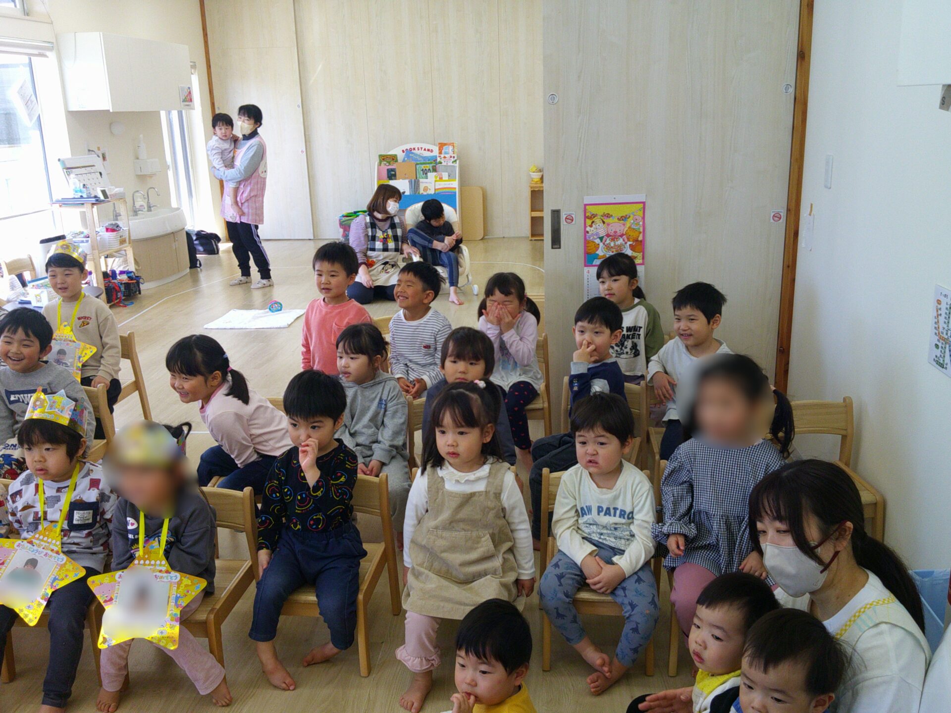 今日は、札幌くじら保育園では初めての全園児集まって