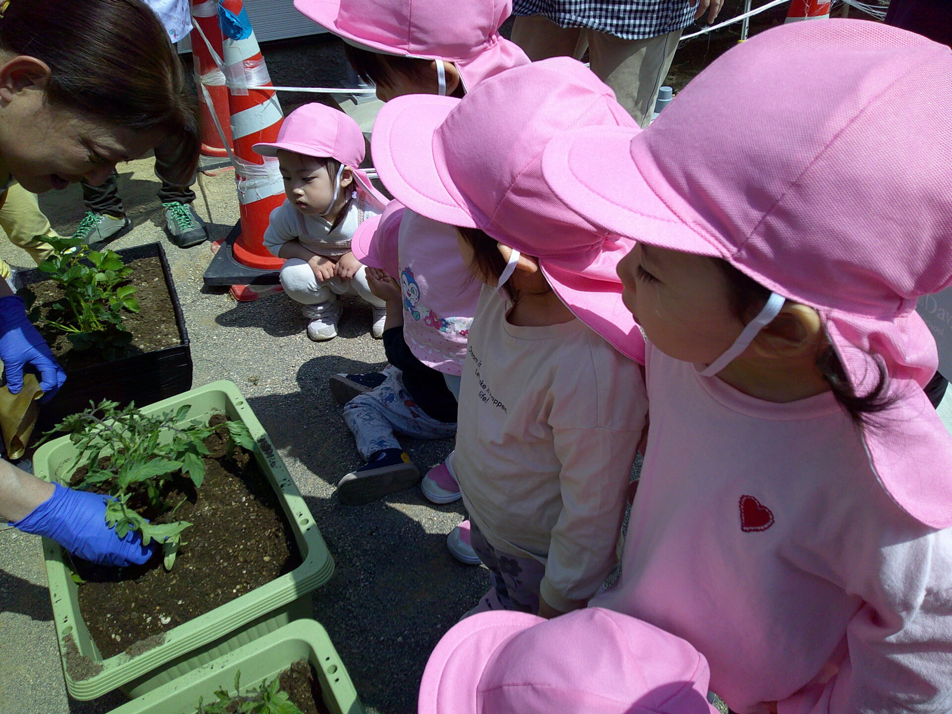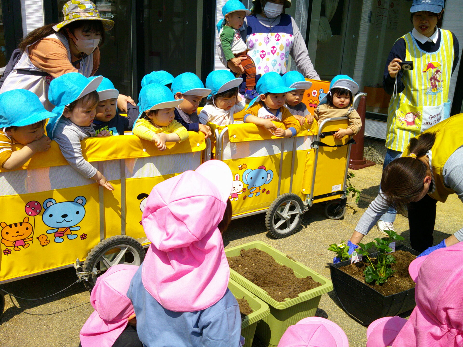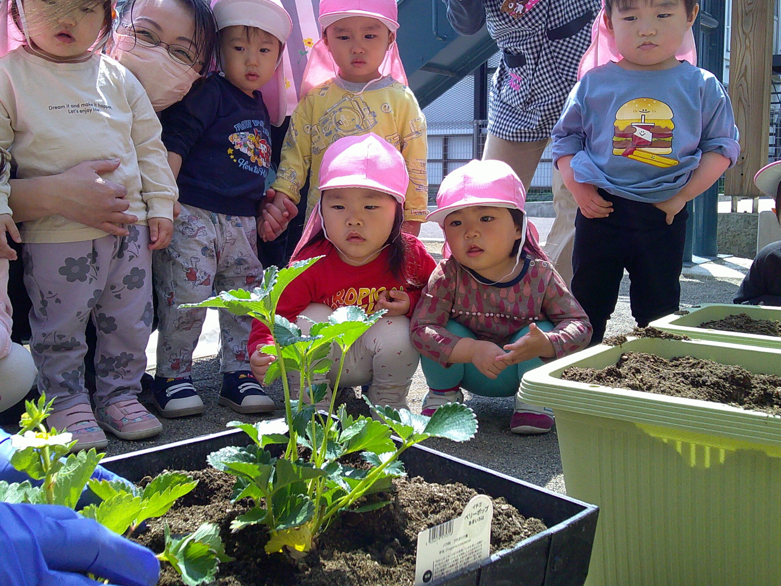 5月8日(水)に乳児クラスさんみんなで、いちごとトマトの苗植えをしましたよ~♬