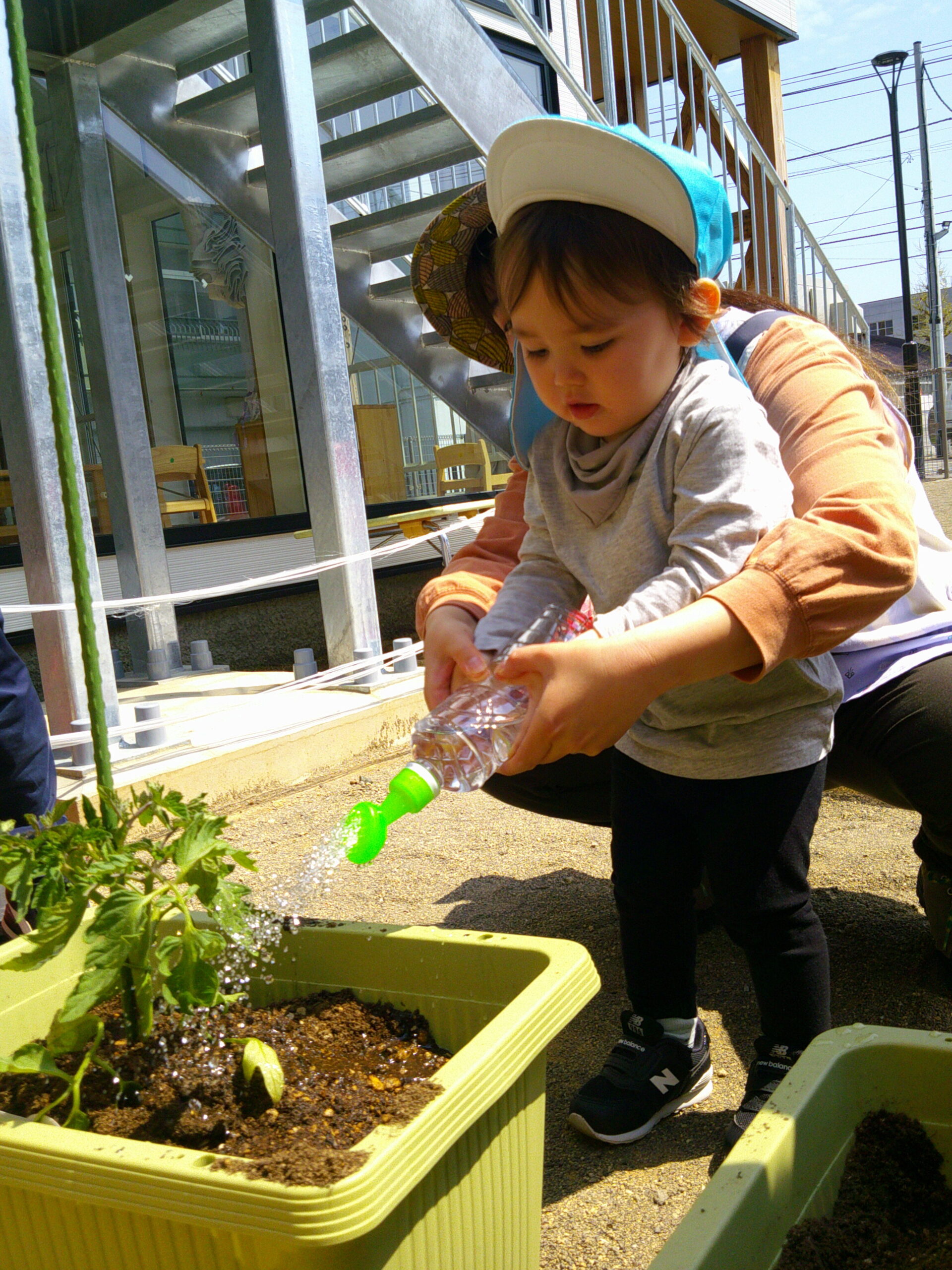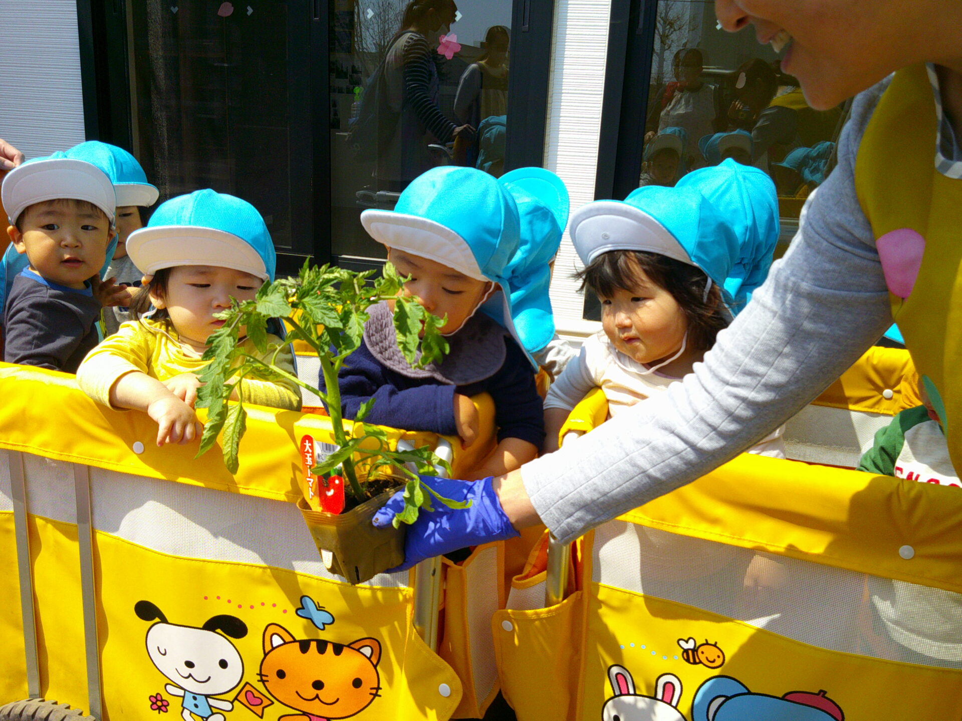 「トマトちゃんお腹へったかな?」とこれからの生長を楽しみにしているみんなでした☺