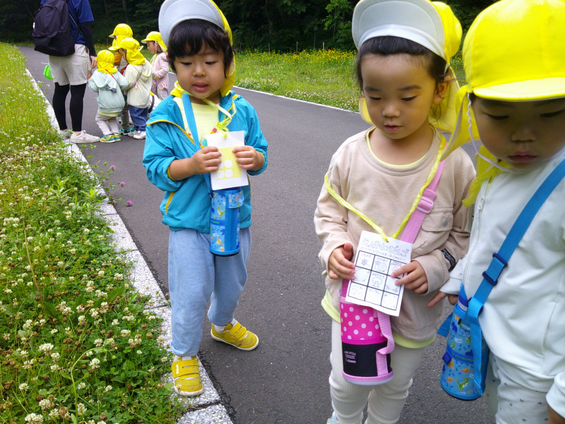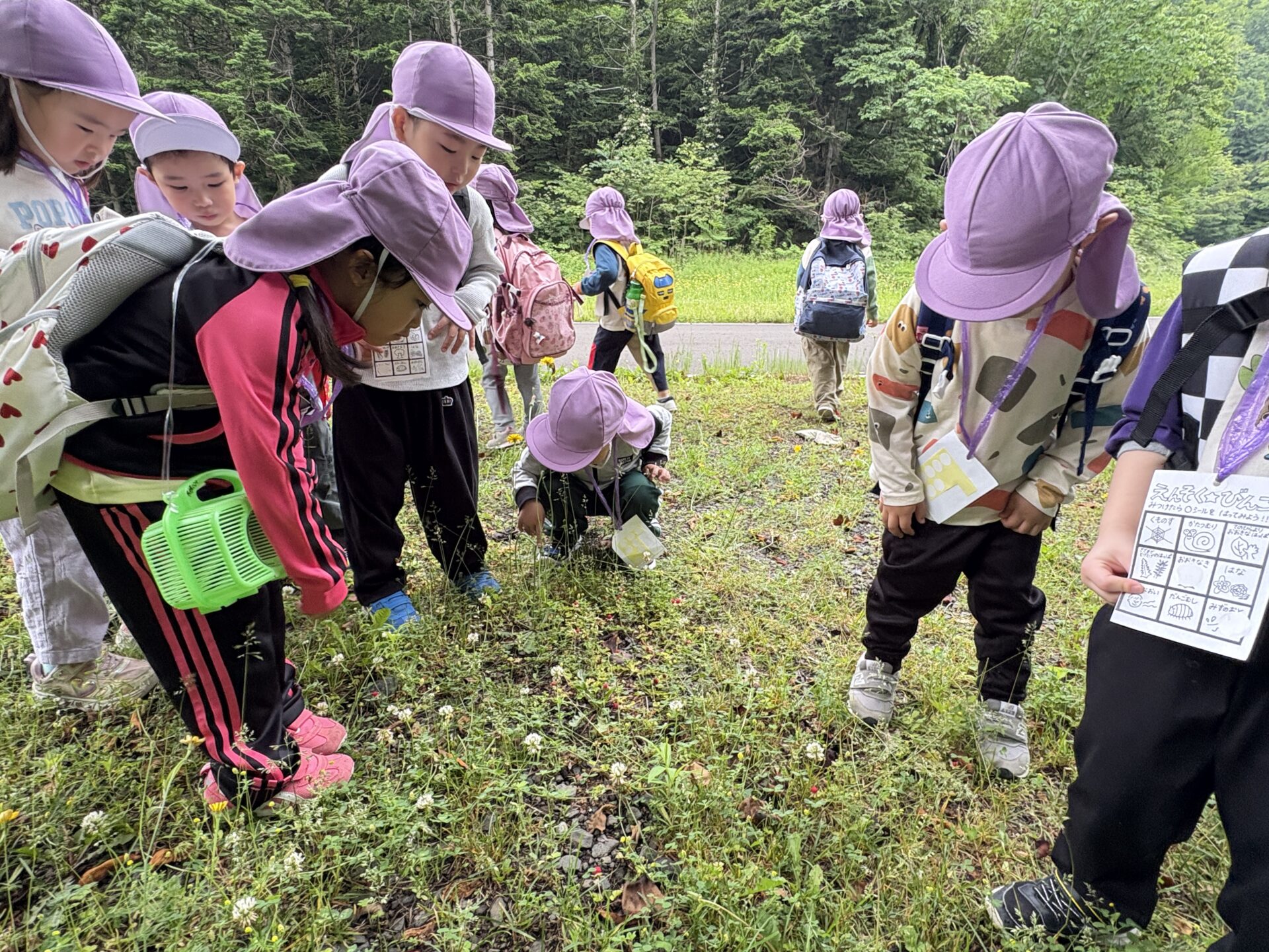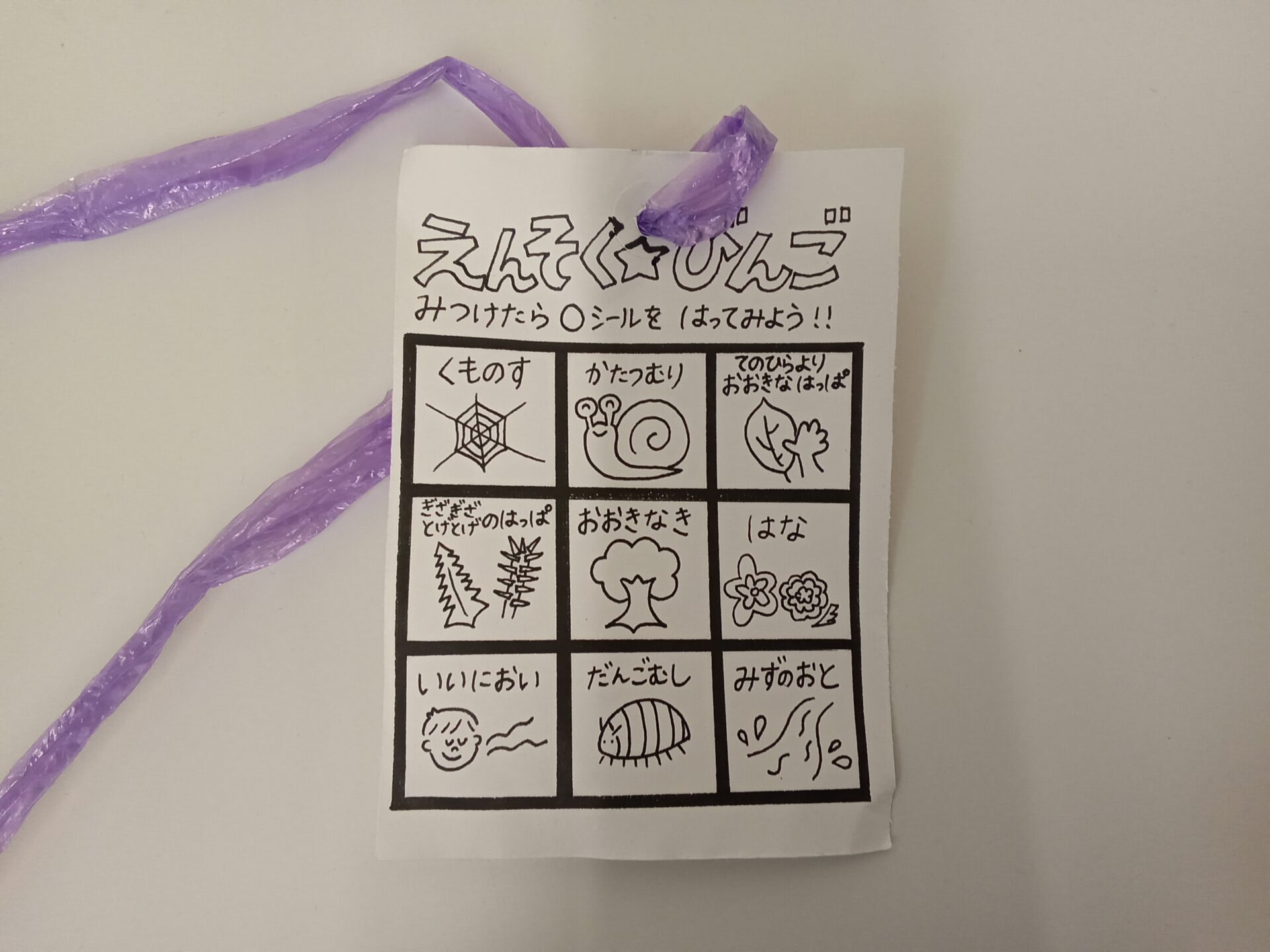 ビンゴを見ながら、虫はいるかな?大きい葉っぱはあるかな?