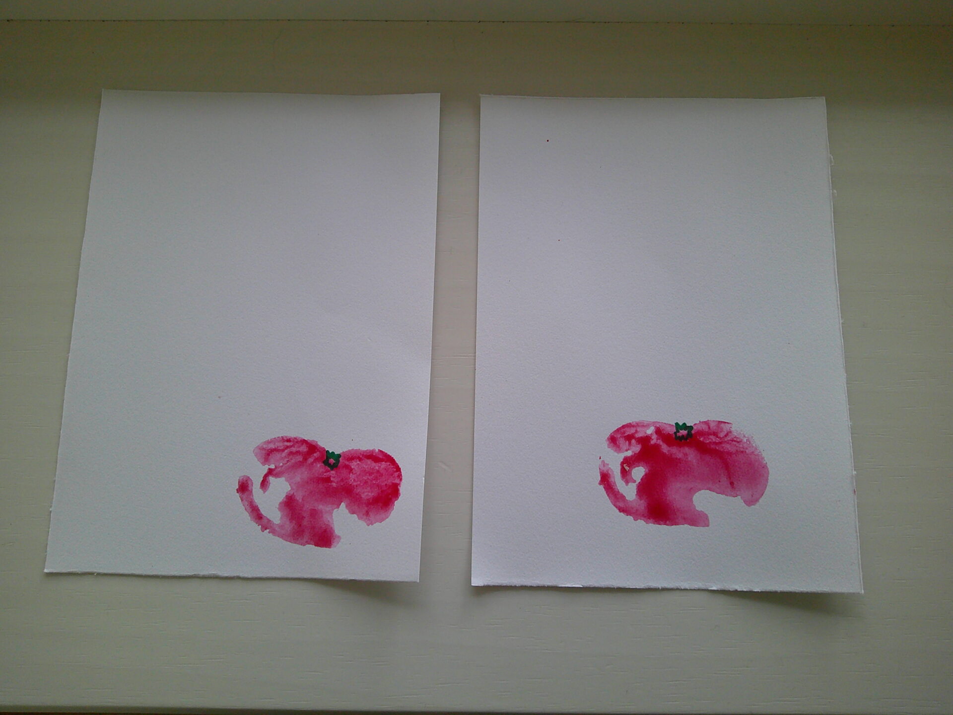 収穫したトマトは記念にスタンプにし、園長先生にプレゼント!