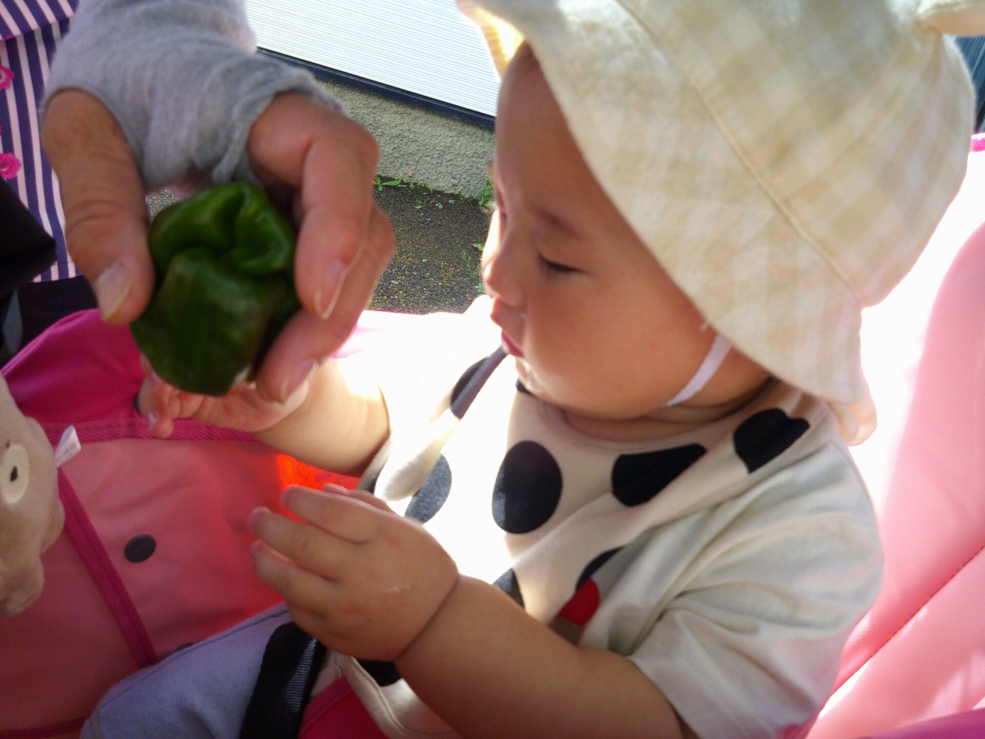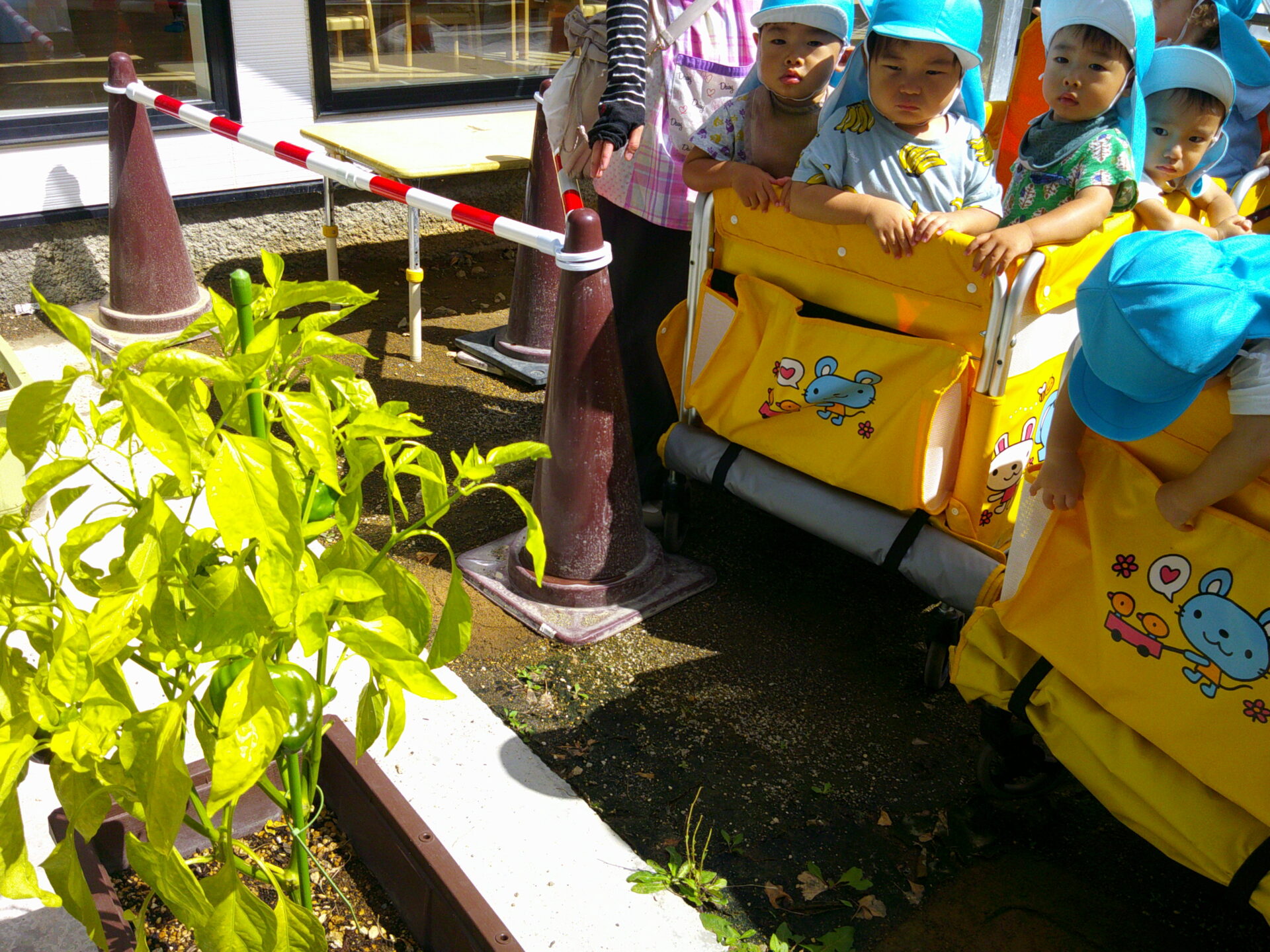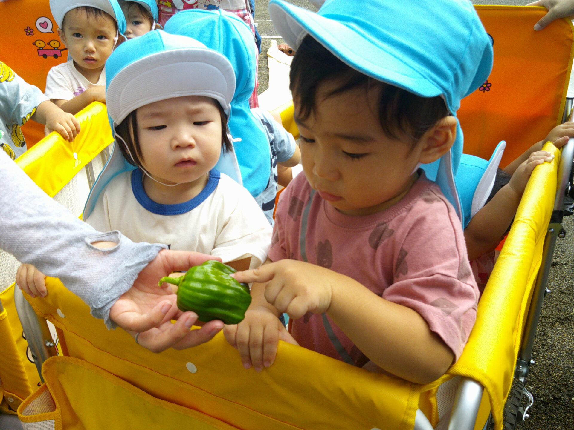 ピーマンに興味深々のうみ・だいちチームさん☺