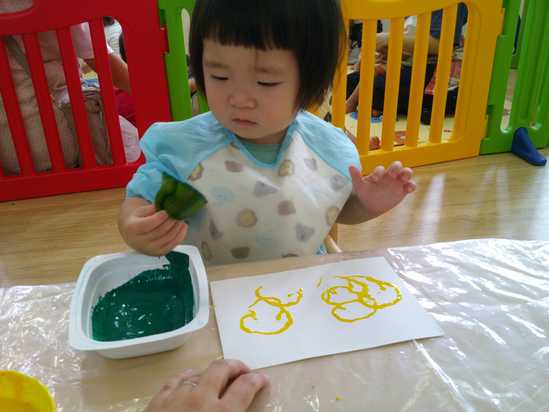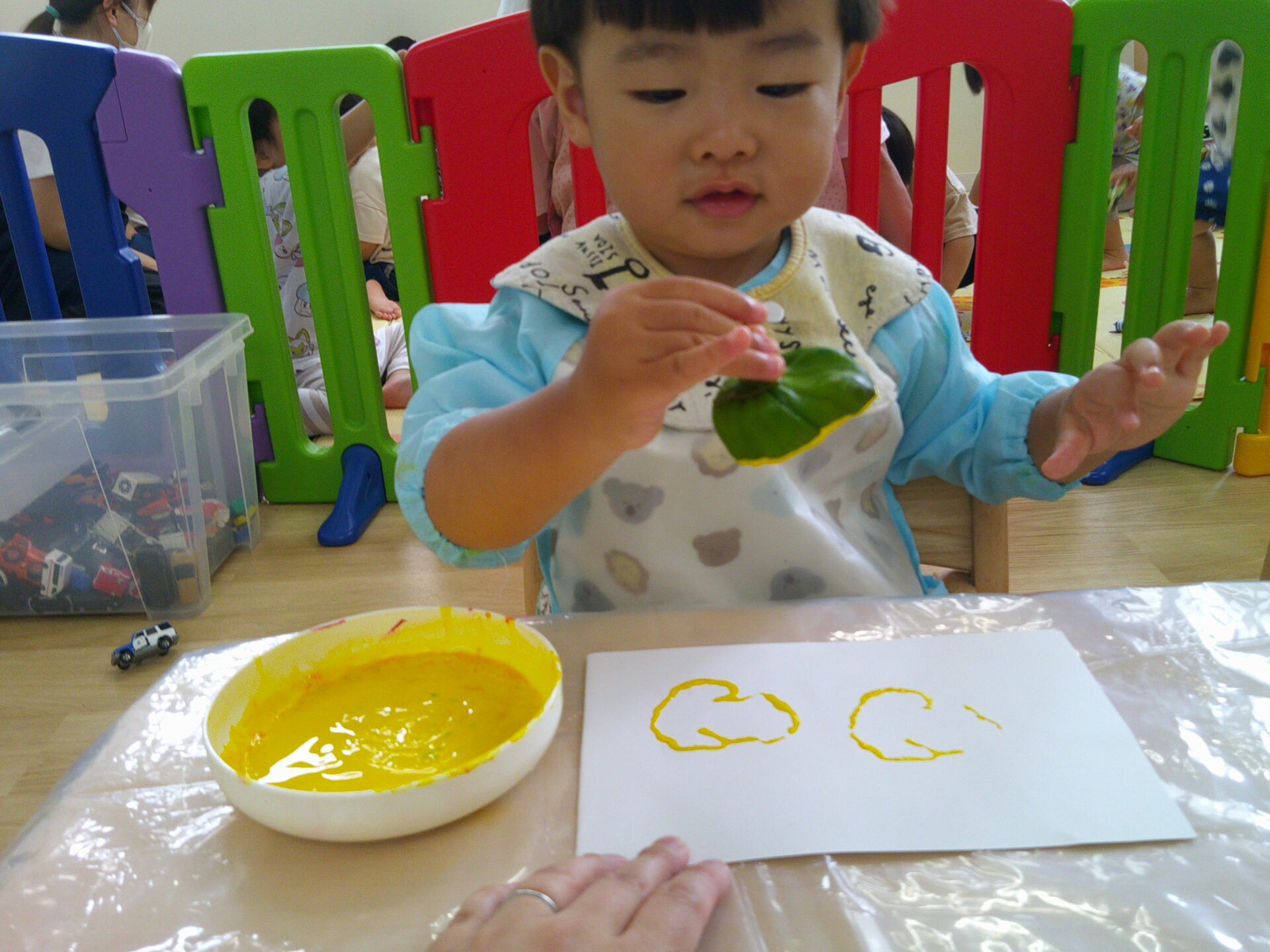 だいちチームでは収穫したピーマンを使って野菜スタンプにチャレンジしましたよ~
