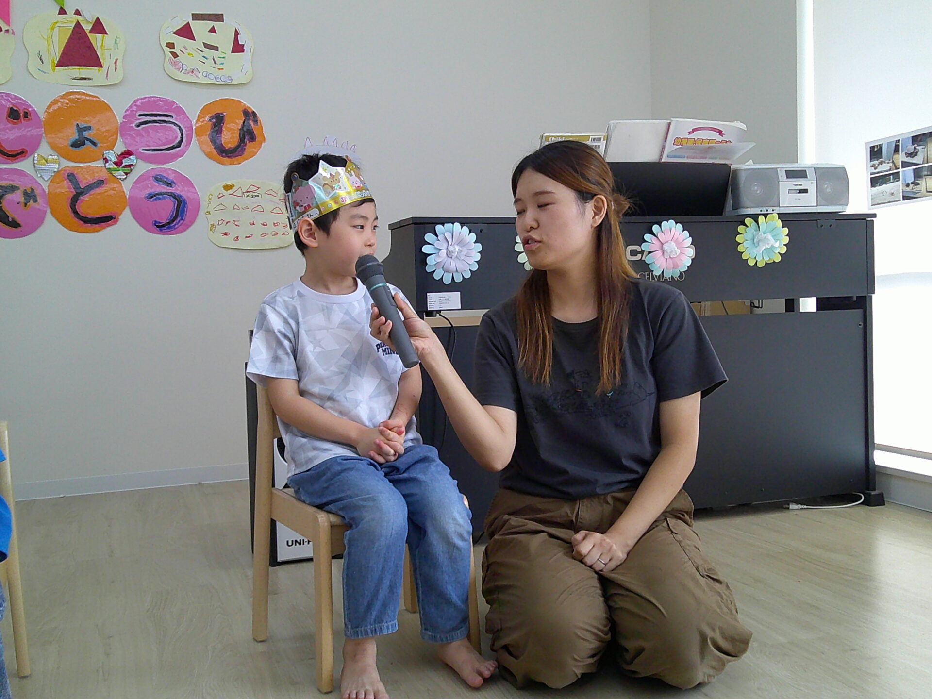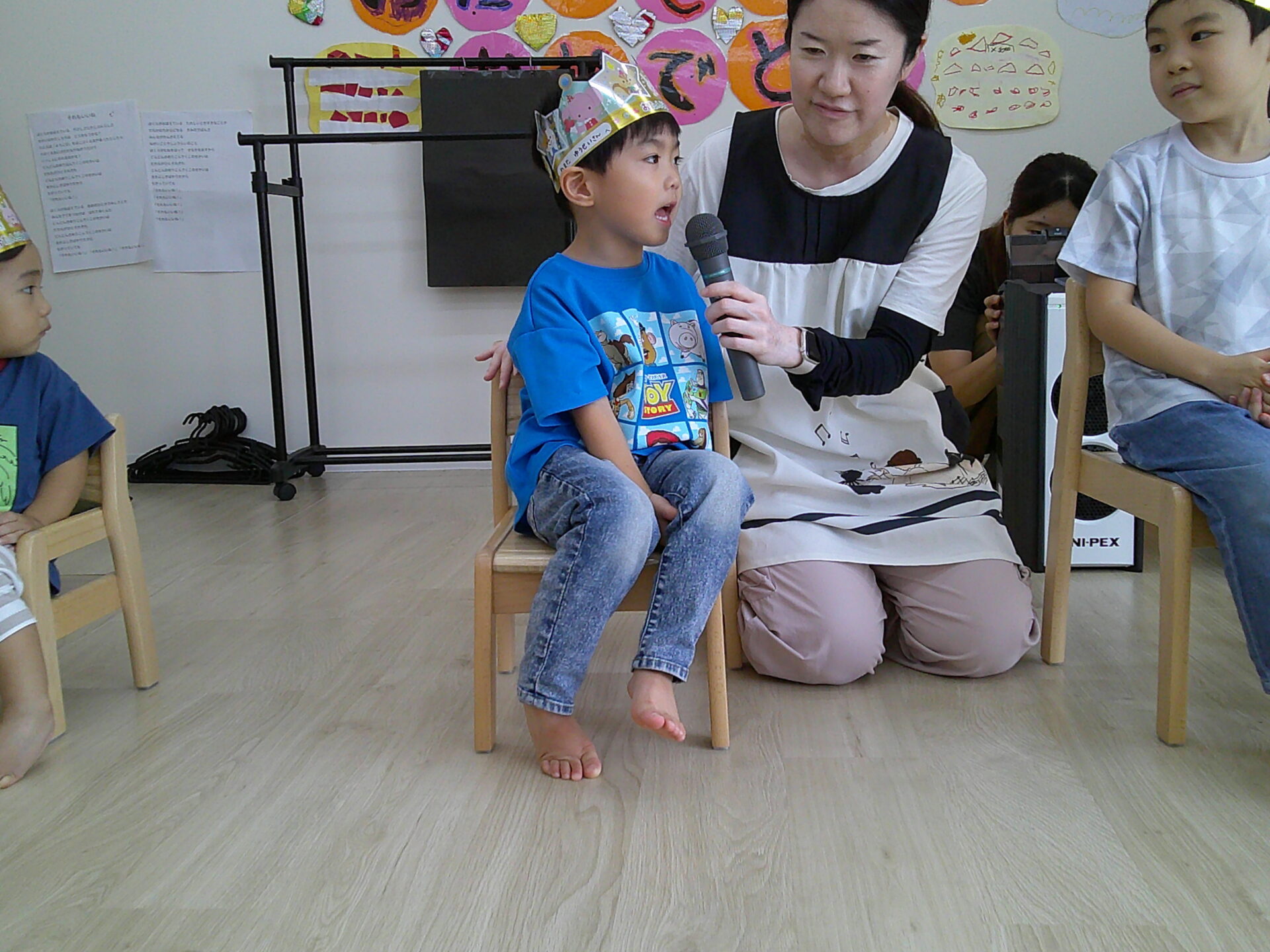 緊張しながらも先生やお友だちからの「好きなお花はなんですか?」「好きな形はなんですか?」などの質問に立派に答えていましたよ✨