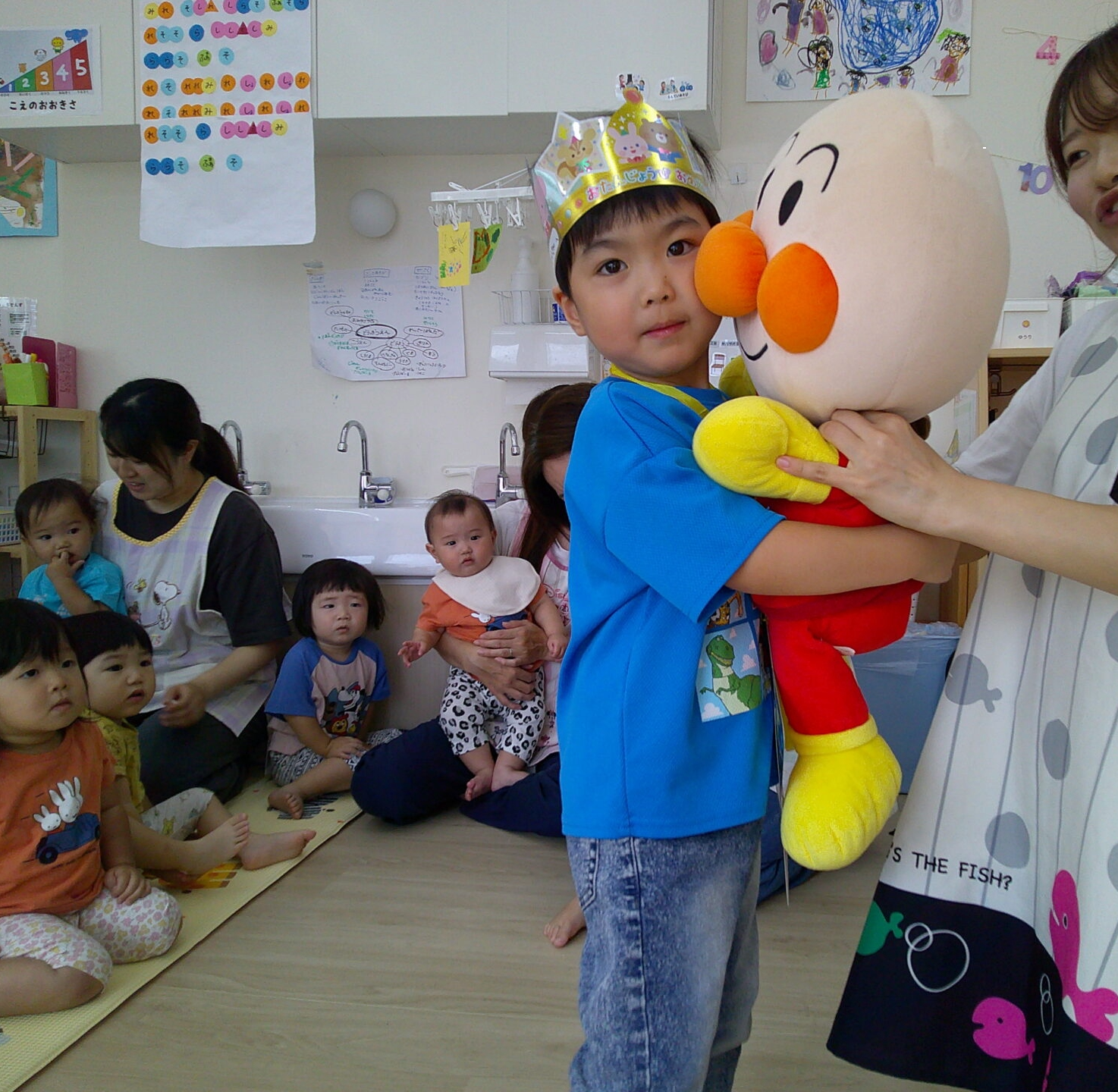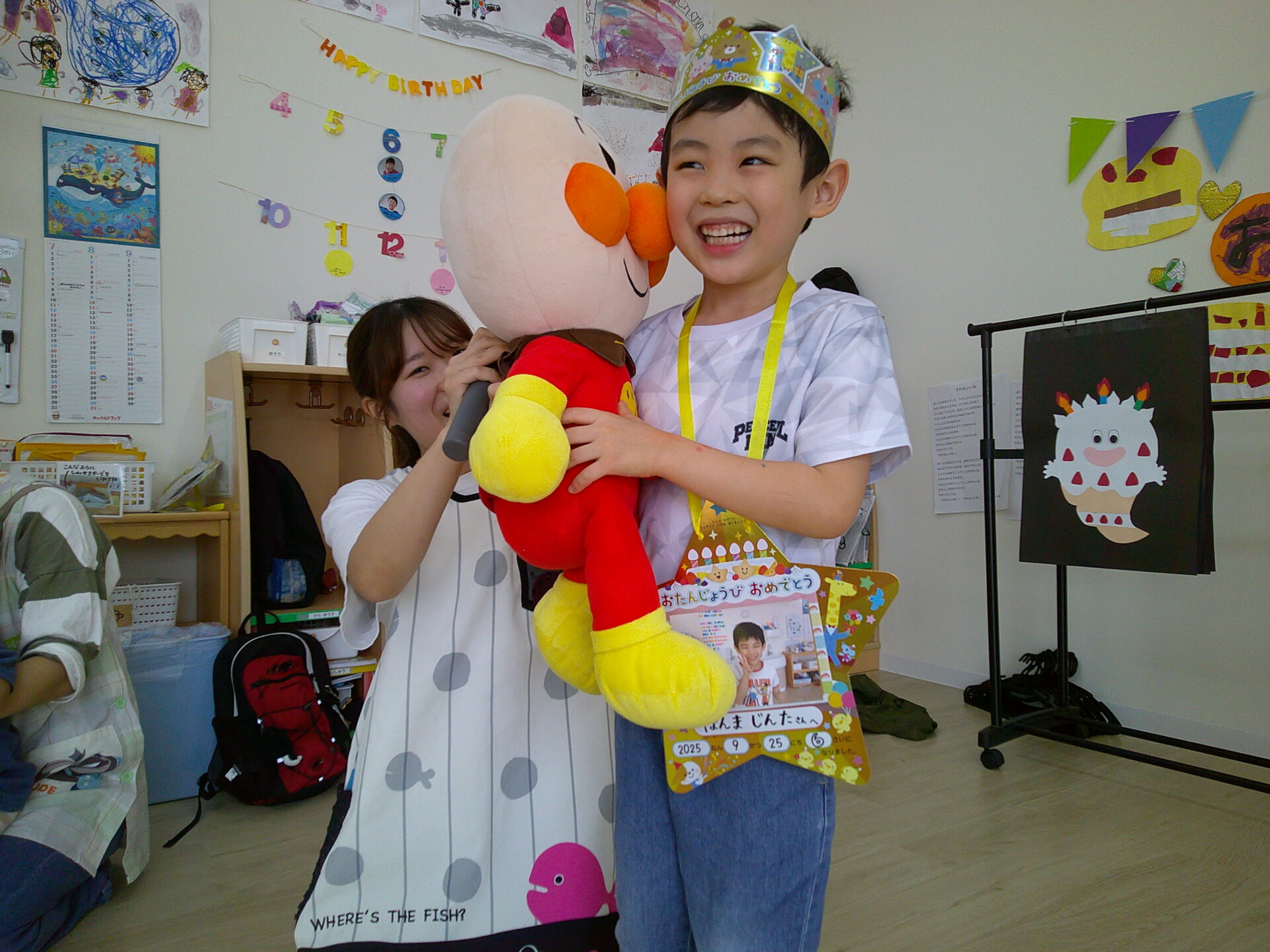 最後にアンパンマンもお祝いに来てくれ、1人ずつギューをしました!とっても嬉しそうな笑顔が見られましたよ♡