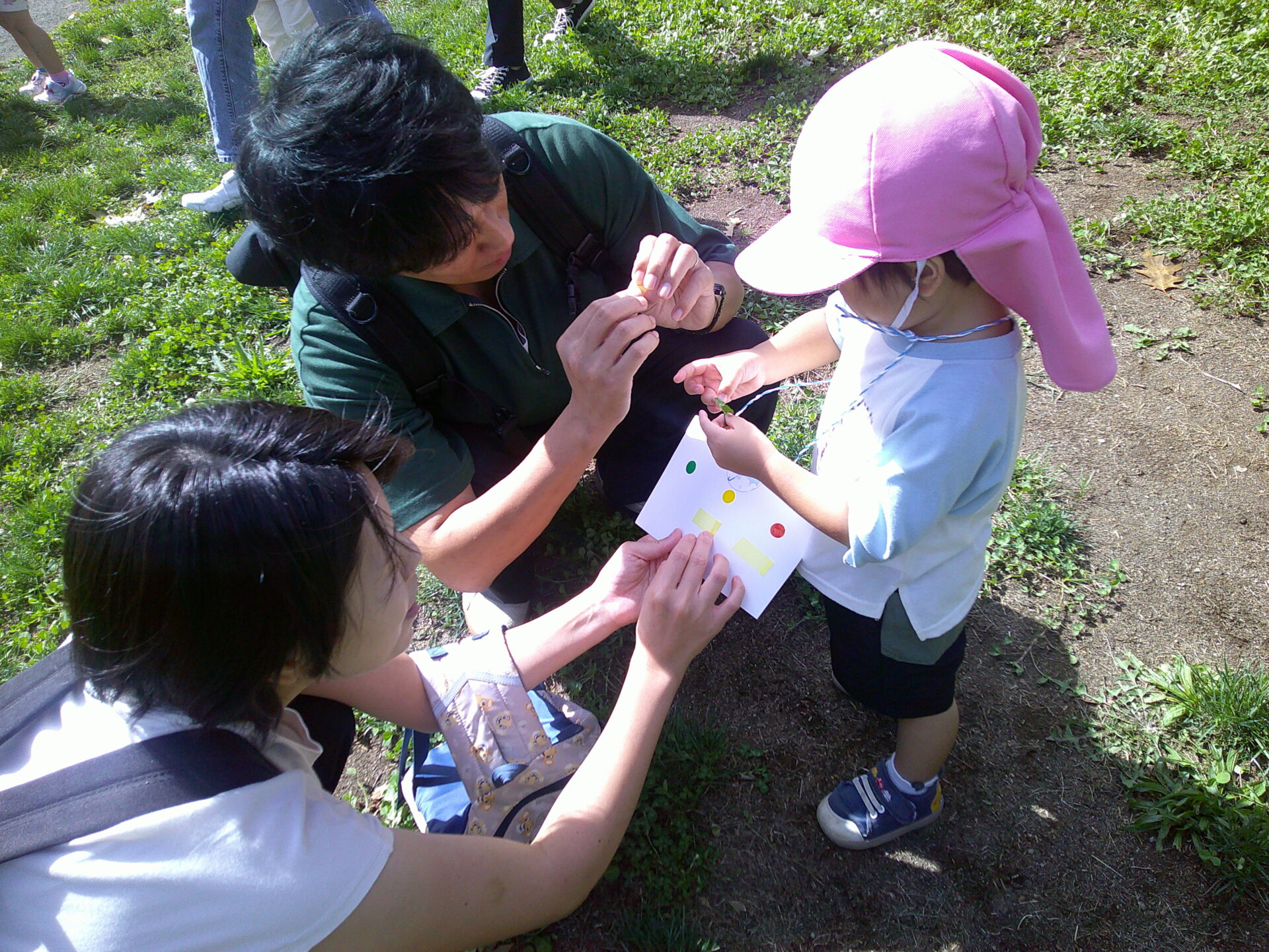 緑・黄色・茶色の3色と同じ植物を探す、色探し探索遊びも行いました。