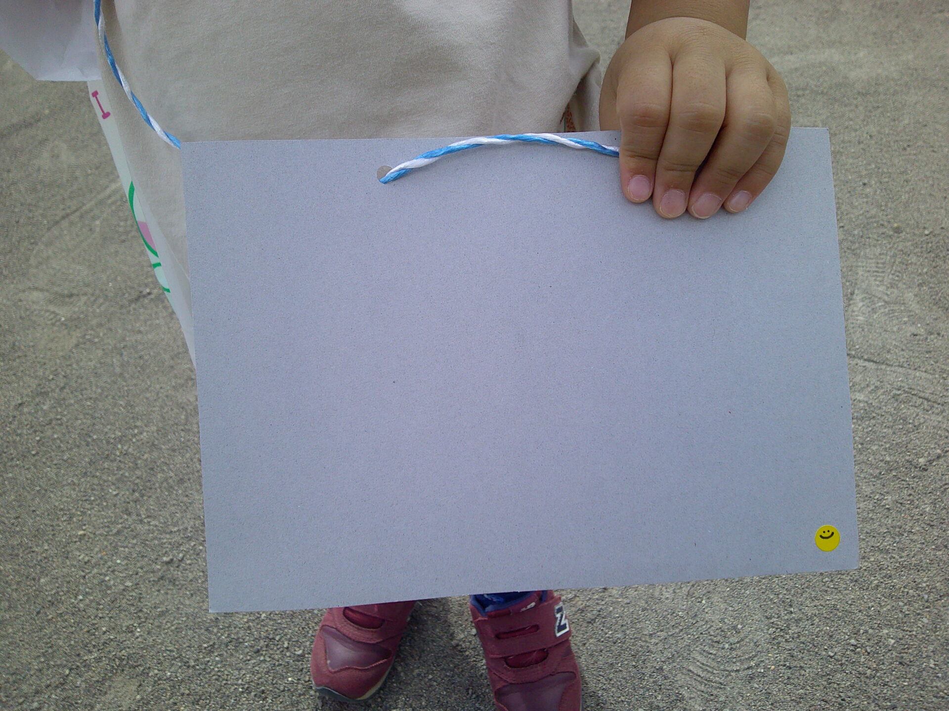 裏にニコちゃんマークが!このマークを当てたお子様には、どんなものを見つけたのか発表を