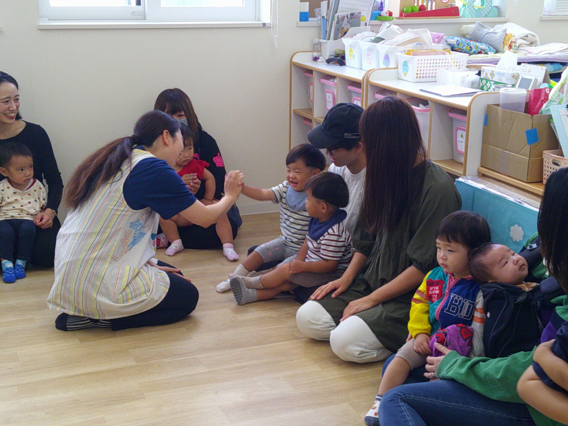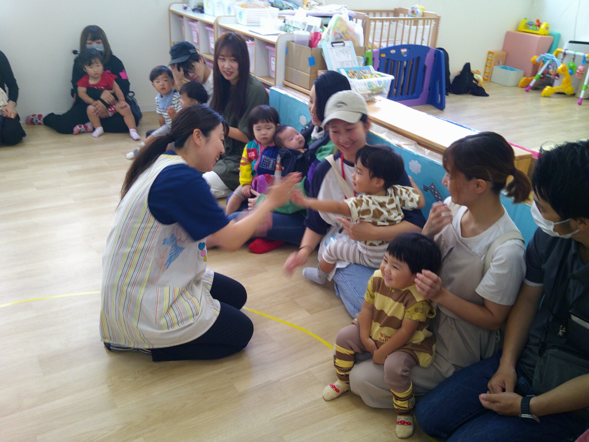 絵本を見たり、歌をうたったりお返事をしたりとお母さん方と嬉しそうに参加していた子ども達です♡