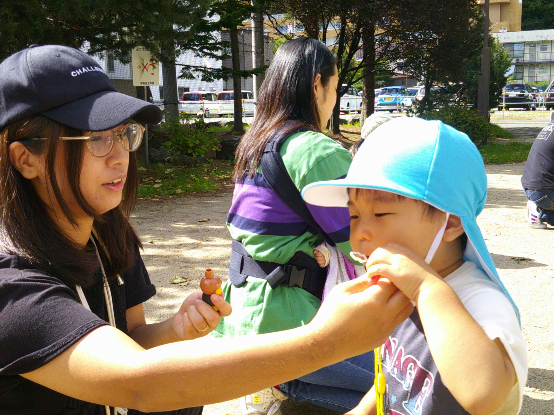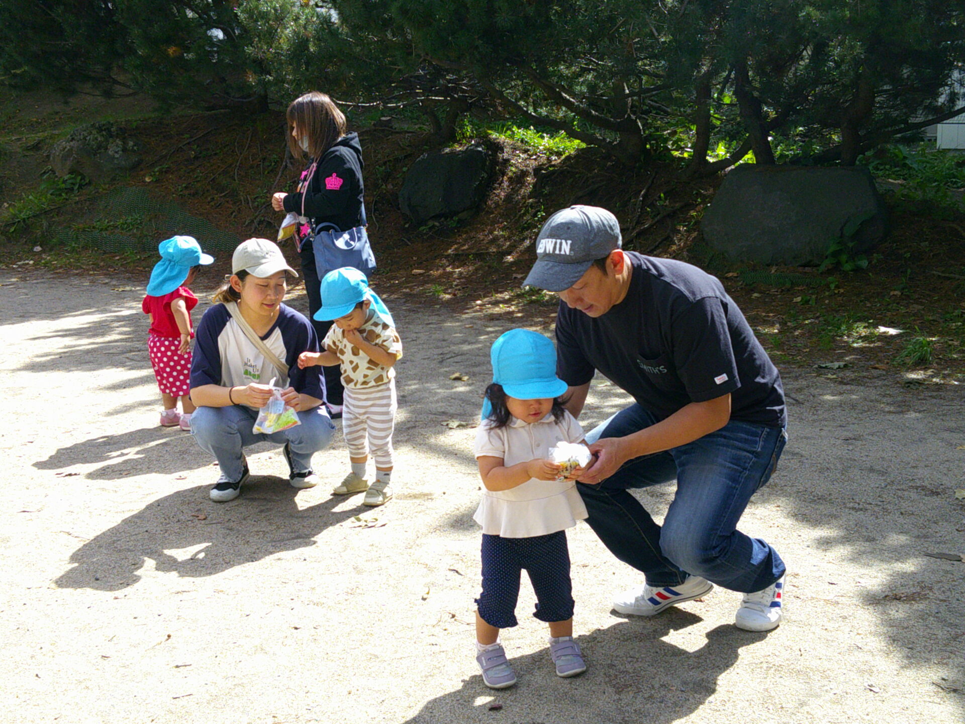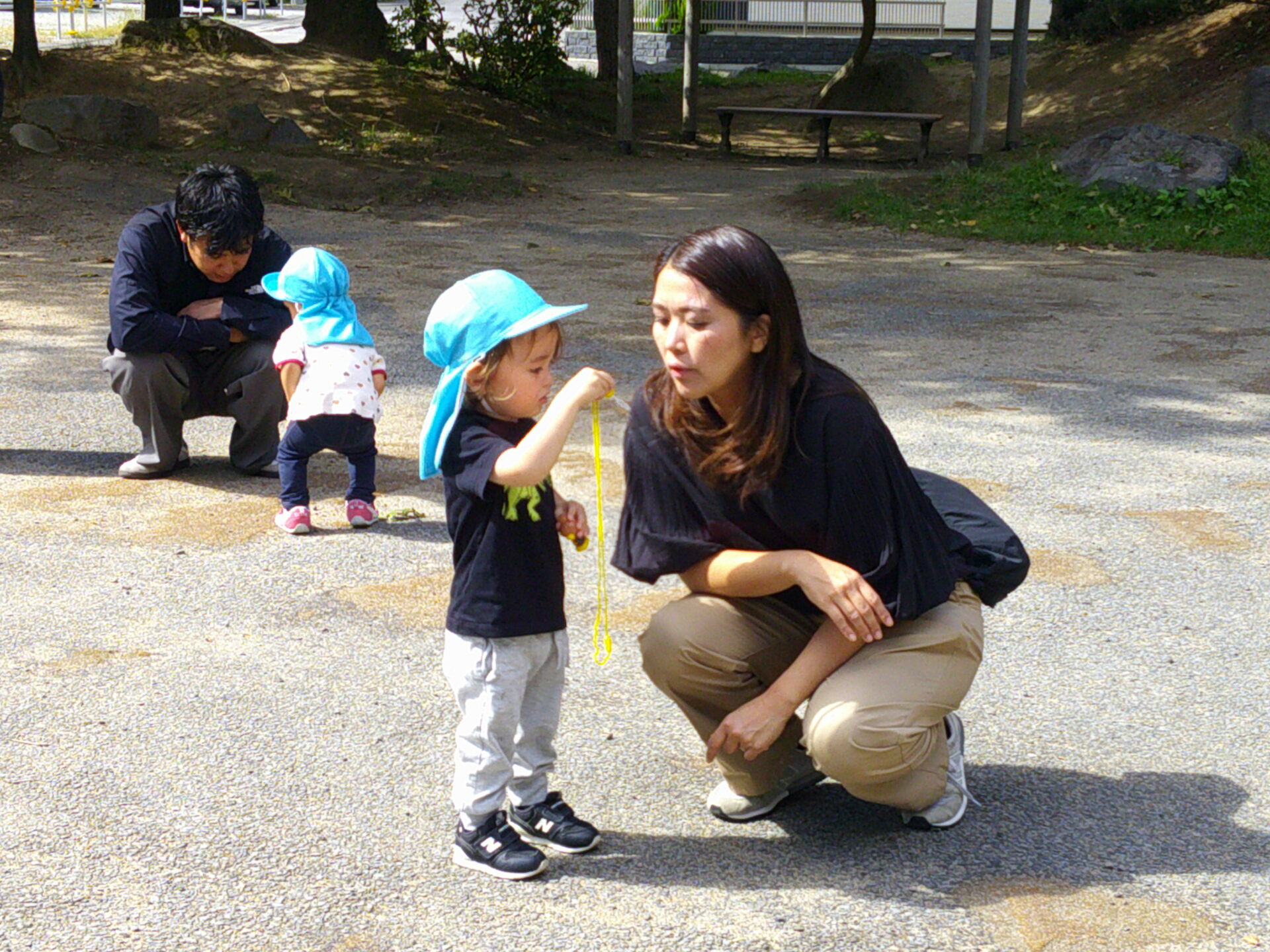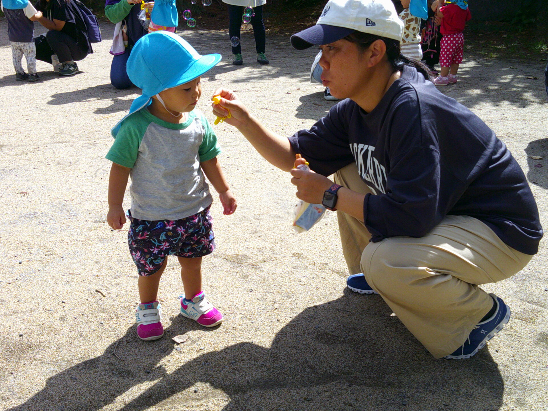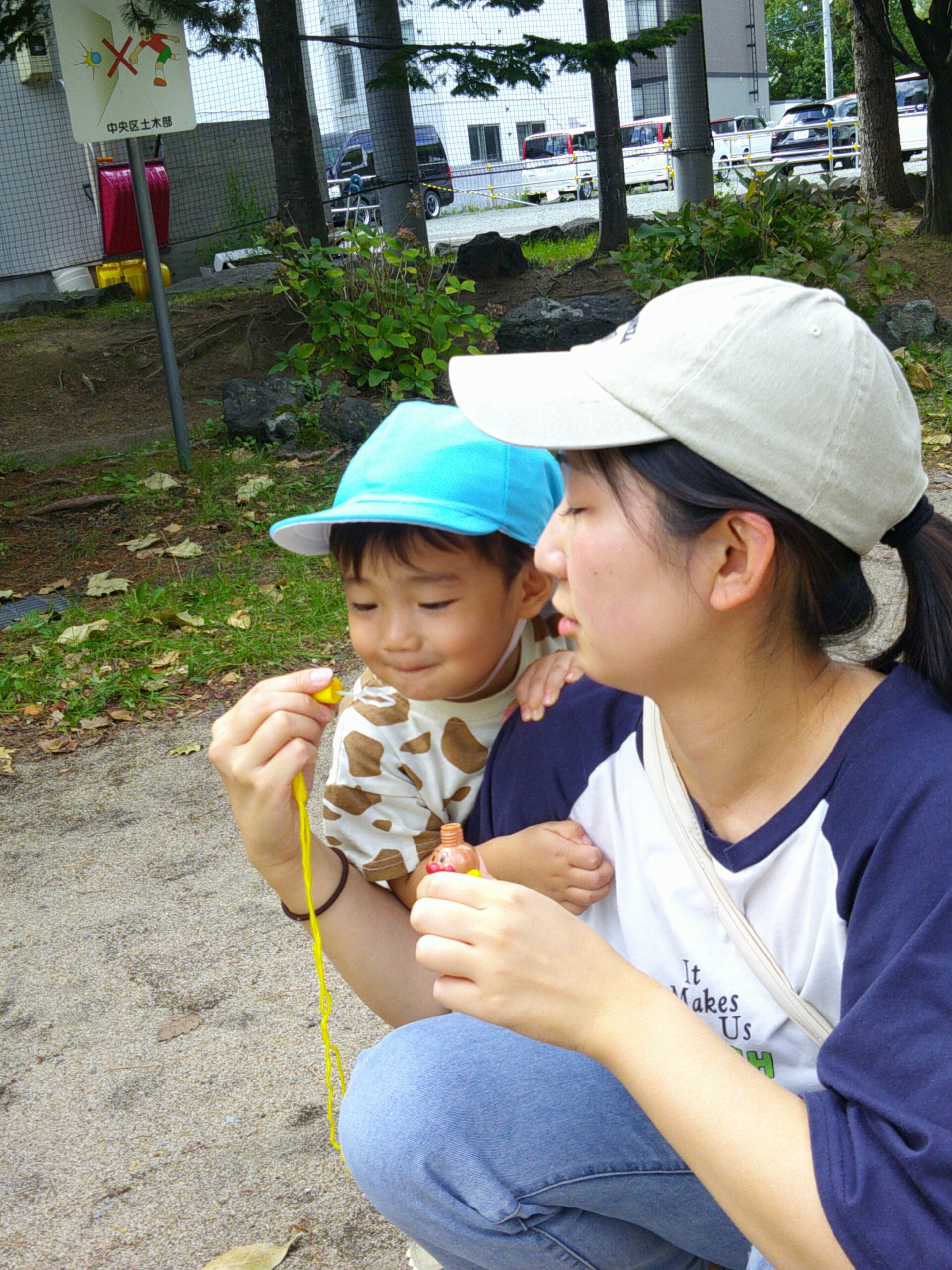 一生懸命シャボン玉をとばしたり、走ったり小石を触ったりと普段の遊びをお家の方と楽しんでいました☆彡