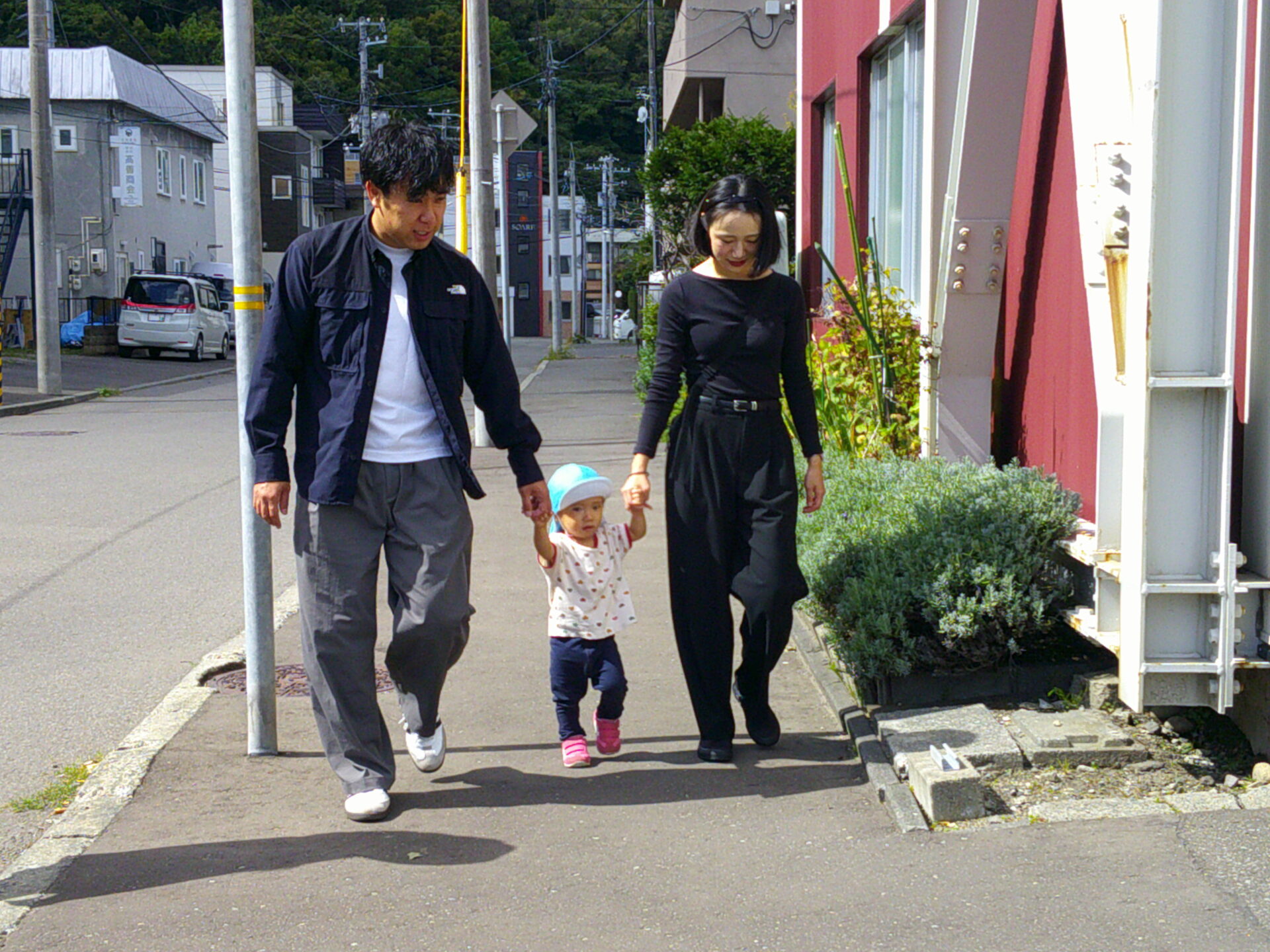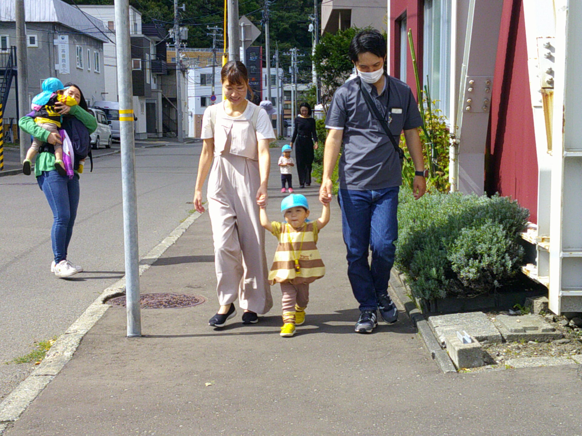 朝の会のあとは、お家の人と手を繋いでお散歩へ出発~!