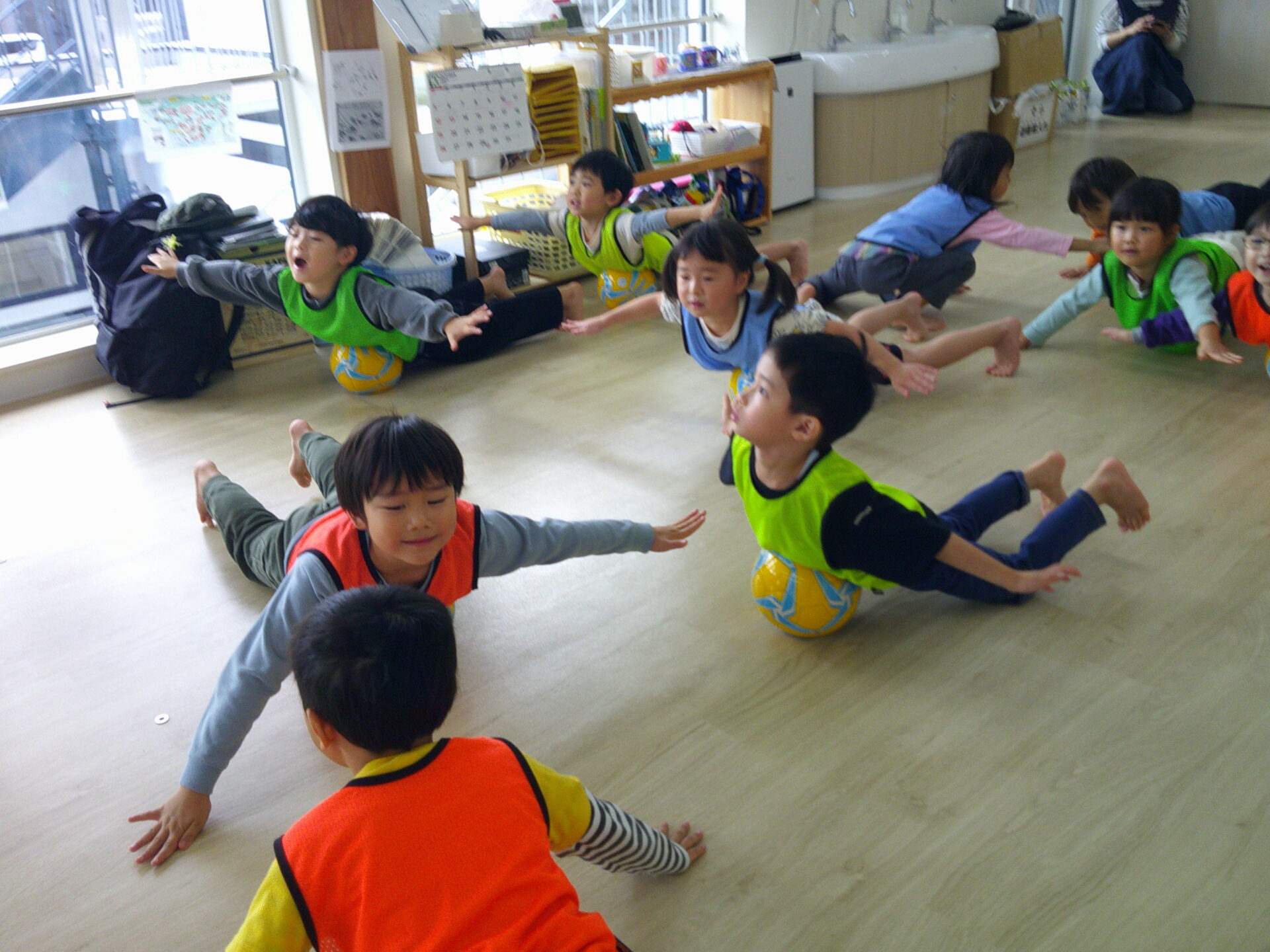 ボールの上に座ったり、、