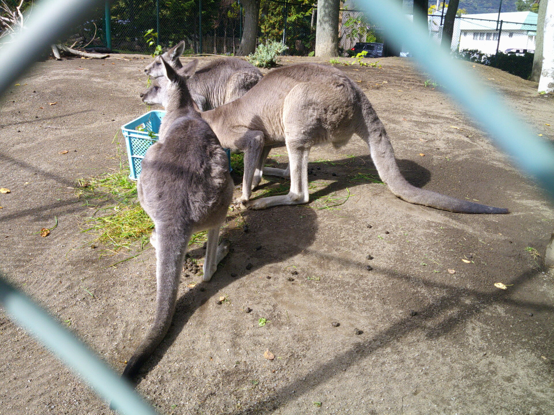 カンガルーを見て「ご飯食べてる」「お野菜食べたらうんち出るんだね」「ウンチはどこから出てきたのかな?」とうんちの目撃をしました。