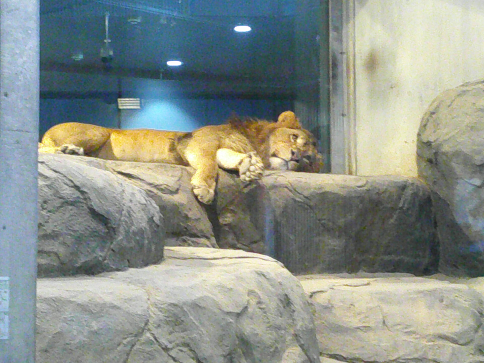 ライオンさんはまだ眠たいみたいです。時々目だけこっちを見てて「あ!こっち見た!」の動きを見ていました。