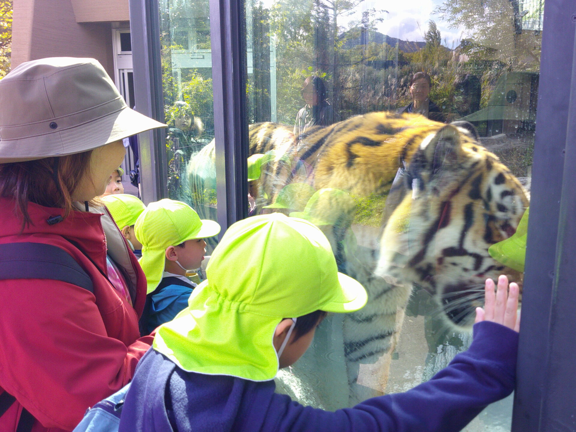 アムールトラはこんなに間近で見ることができて少し圧倒されていましたが、迫力を感じているようでした。