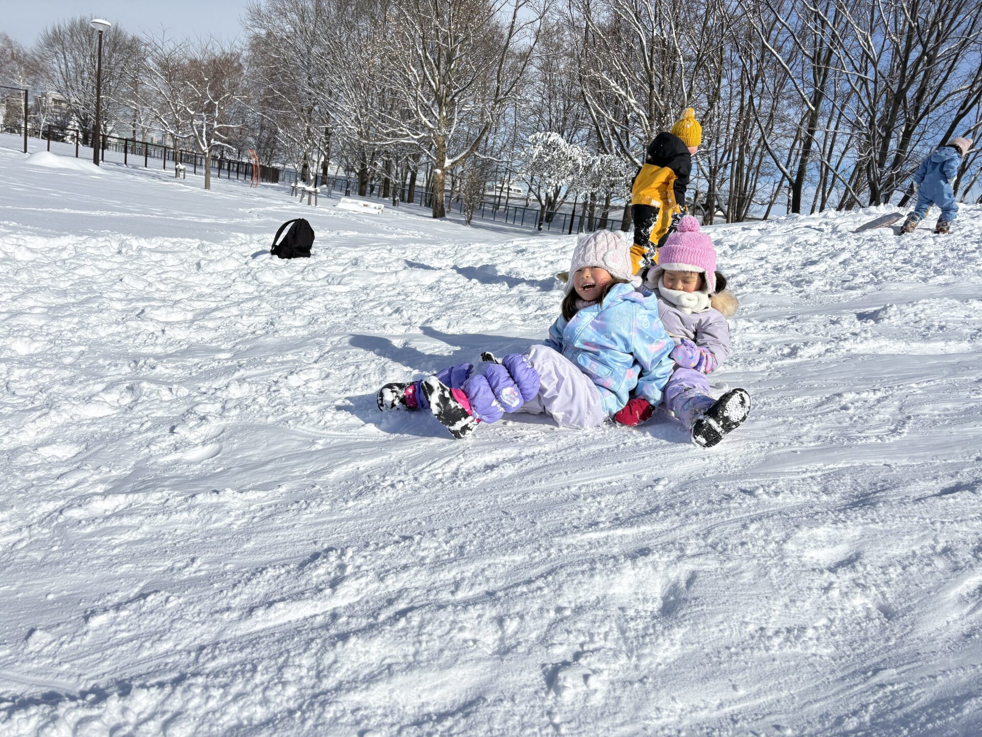 また、別の日には米ぞりを持って少し遠くの公園に足をのばしてみることに。