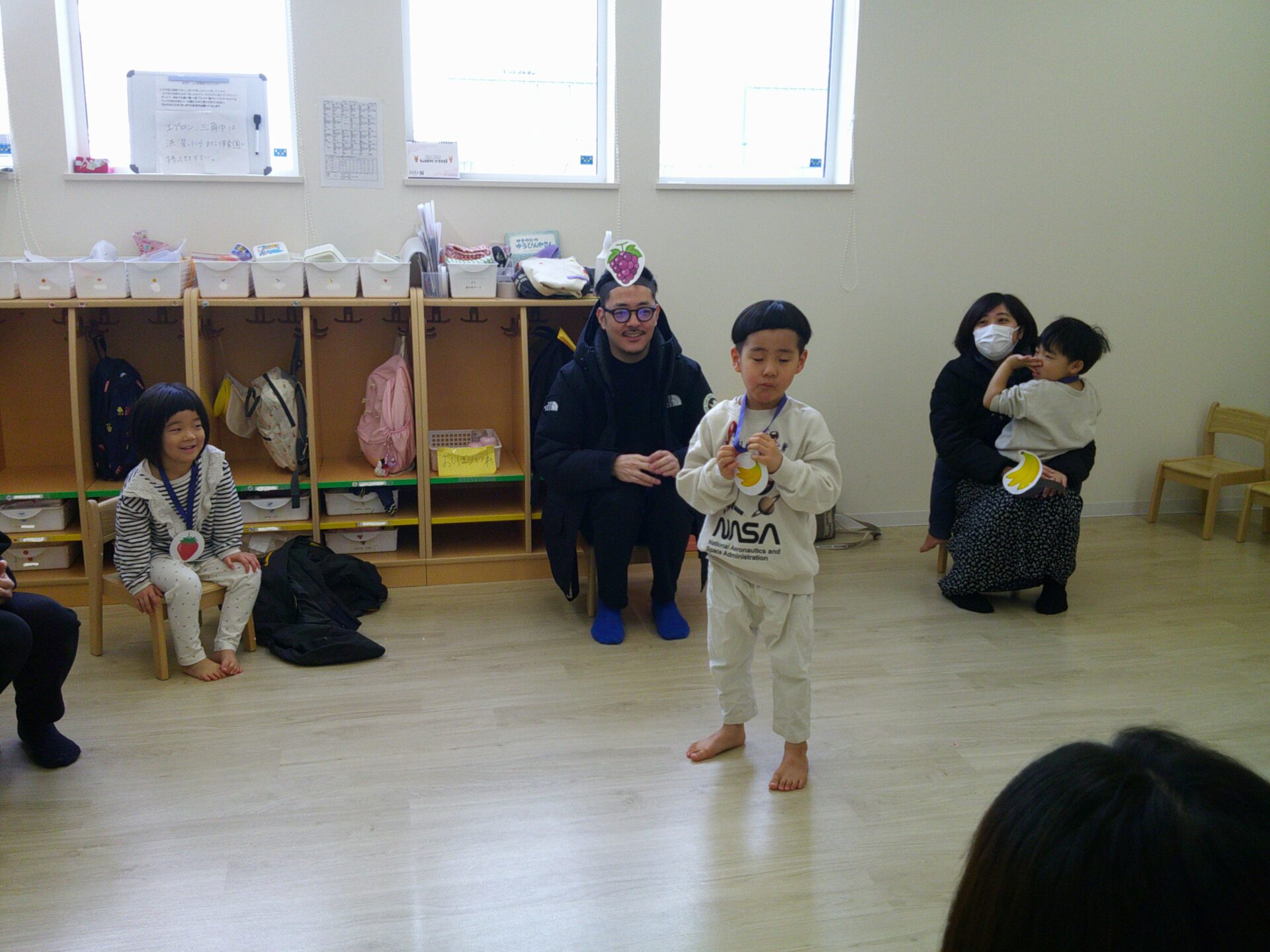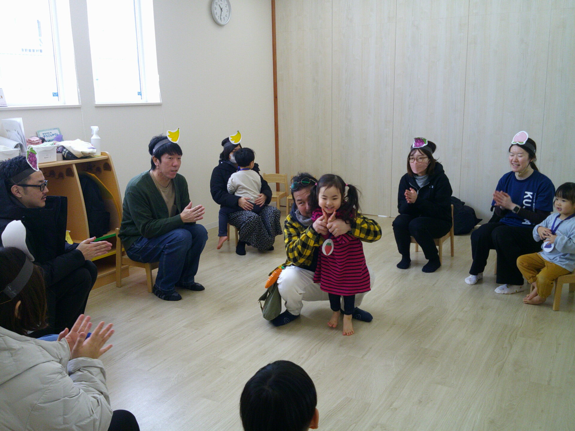 フルーツバスケットでは保護者の方にも参加して頂き、親子で楽しみました。子ども達は保護者の方と一緒に遊べてとても嬉しかったと思います。