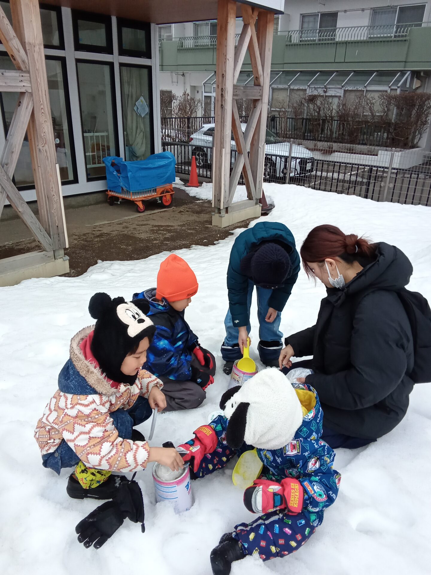 雪国ならではの缶蹴りアイスづくりに