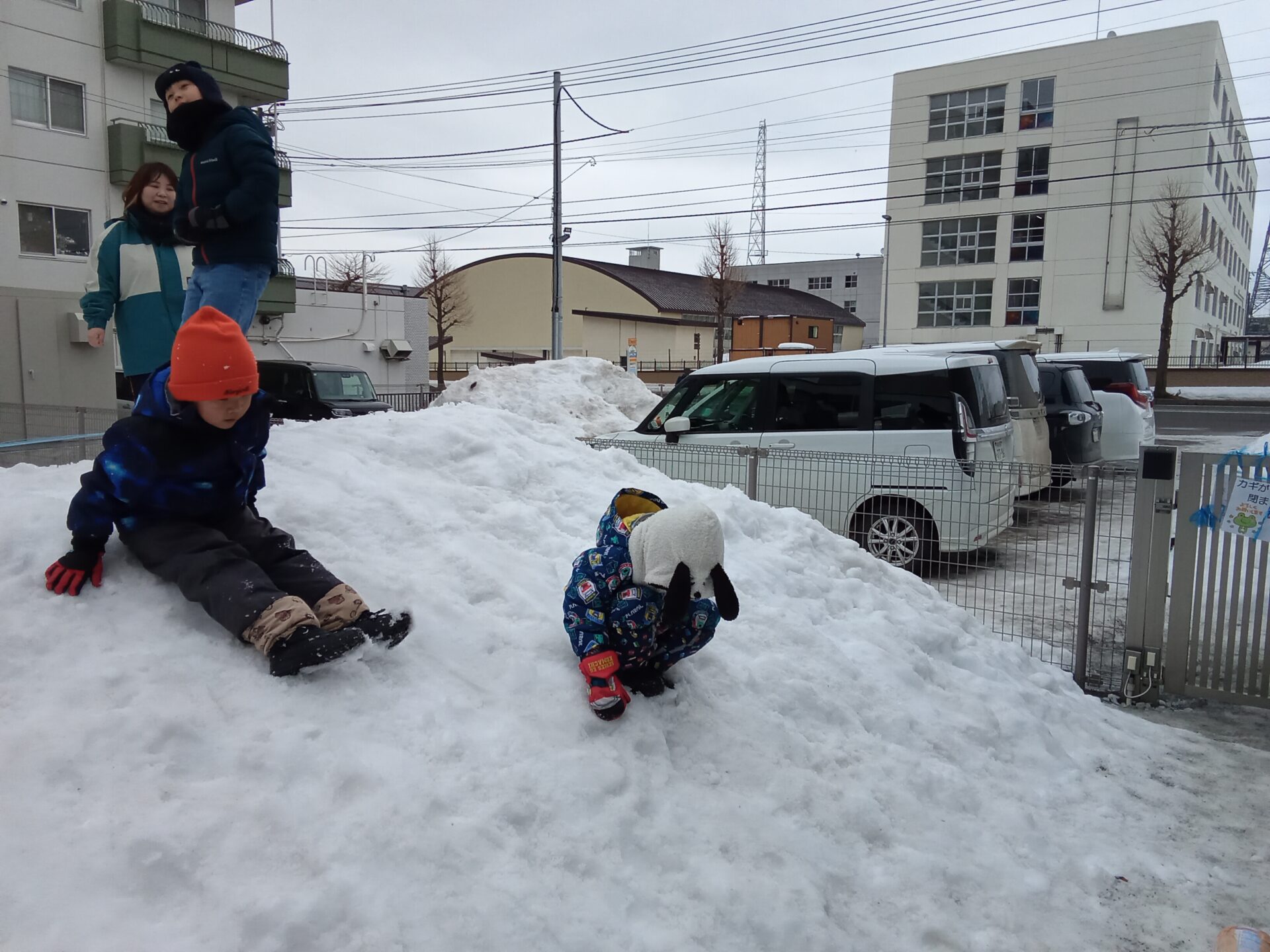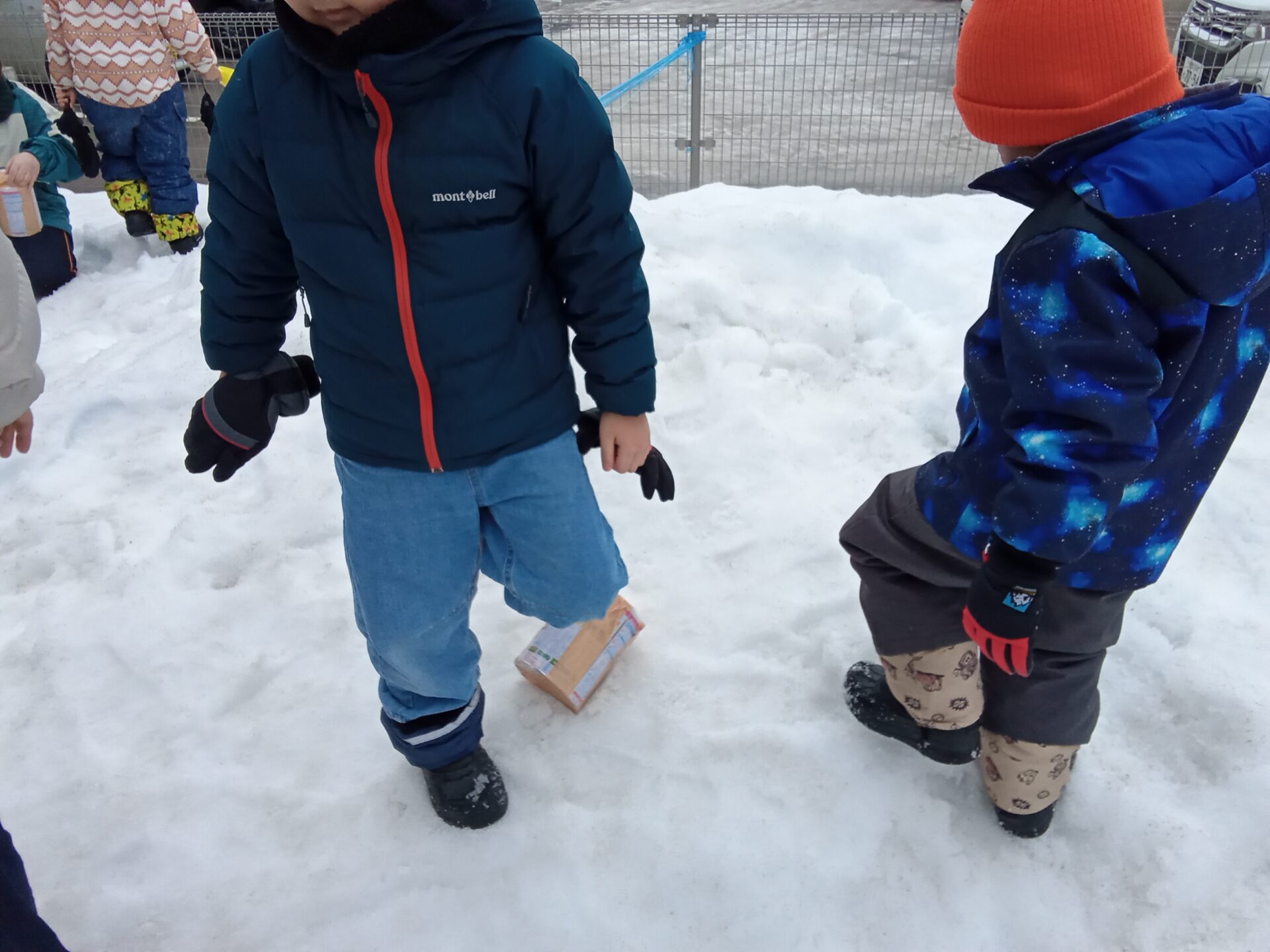 園庭には雪山があるので、その坂を利用して